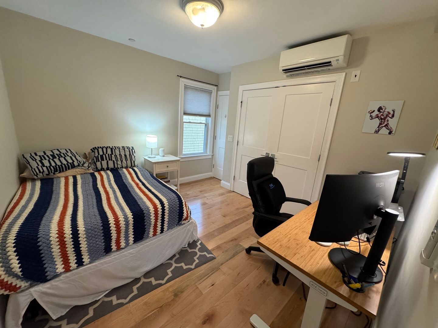 Lovely light-filled 2B, 2B, PH condo a short walk to JP’s vibrant Centre Street and public transportation. This condo was fully renovated in 2018 with a generous open floor plan. It features a stunning chef’s kitchen with stainless Bosch appliances, granite countertops, shaker cabinetry, an island with seating, and glass pendant lighting. The primary bedroom has an en-suite bath and a walk-in closet; both of the full baths are furnished with radiant-heat flooring. And to keep you comfy year-round, the unit has a mini-split high-efficiency heating and air conditioning system. There is an in-unit laundry with Bosch W&D. A private, covered back deck off the kitchen is perfect for seasonal al fresco dining, and the sunny open-air front porch provides a great sunny spot for container gardening. In addition to the unit’s generous closet space, there is a private enclosed storage area in the basement. Available March 1, first month and security deposit are due at lease signing.